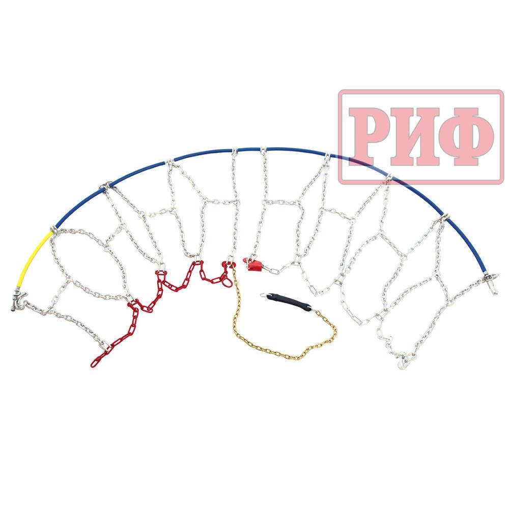 Материал – высокопрочная цементированная сталь с цинковым покрытием. Квадратный профиль звена цепи, за счет граней, обеспечивает наилучшее сцепление колеса с дорожным покрытием без увеличения размера звена. Размер высоты звена цепи РИФ4х4 – 16 мм.