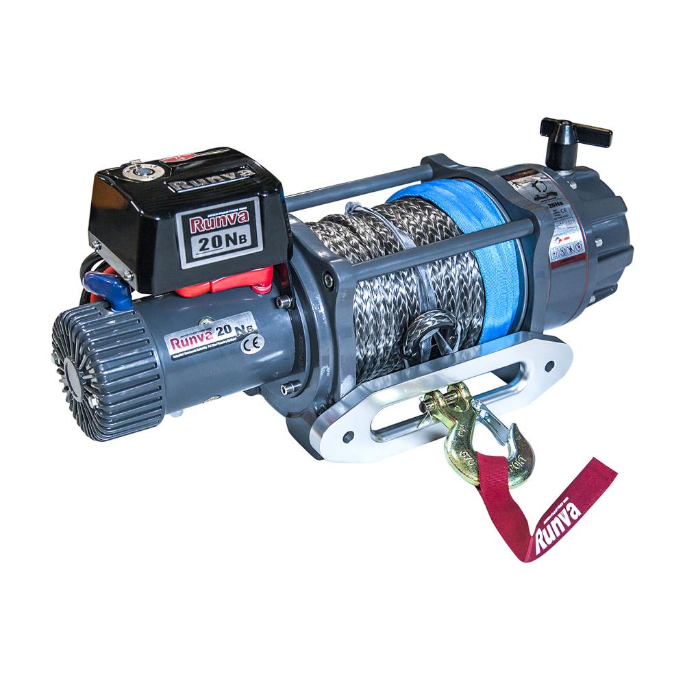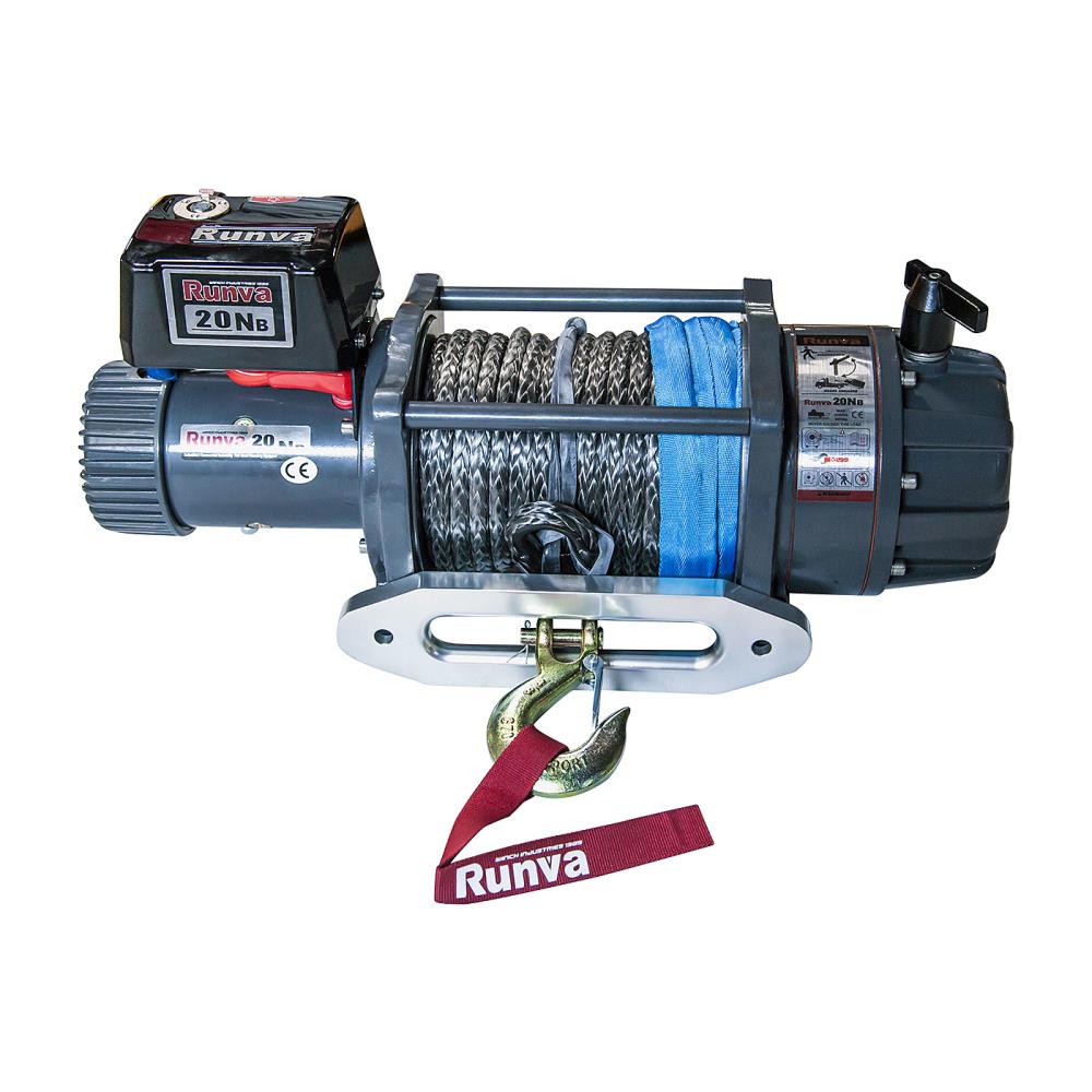 Лебёдка электрическая 12V Runva 20000 lbs синтетический трос (влагозащищенная)