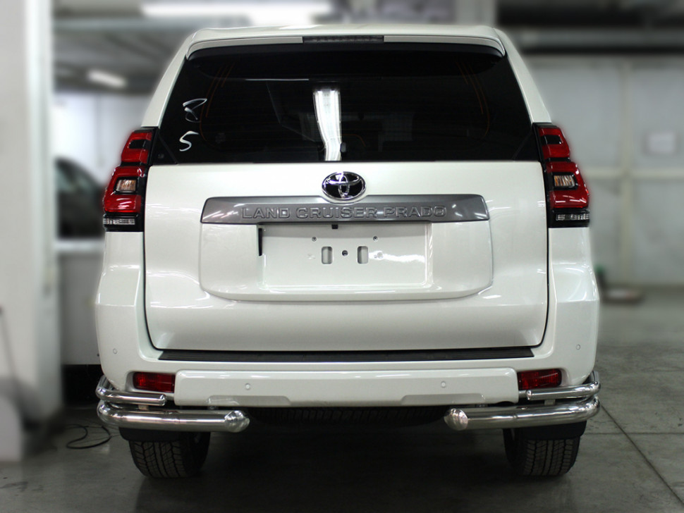 Защита заднего бампера "уголки" d-76+43 (удлиненные) Toyota LC Prado